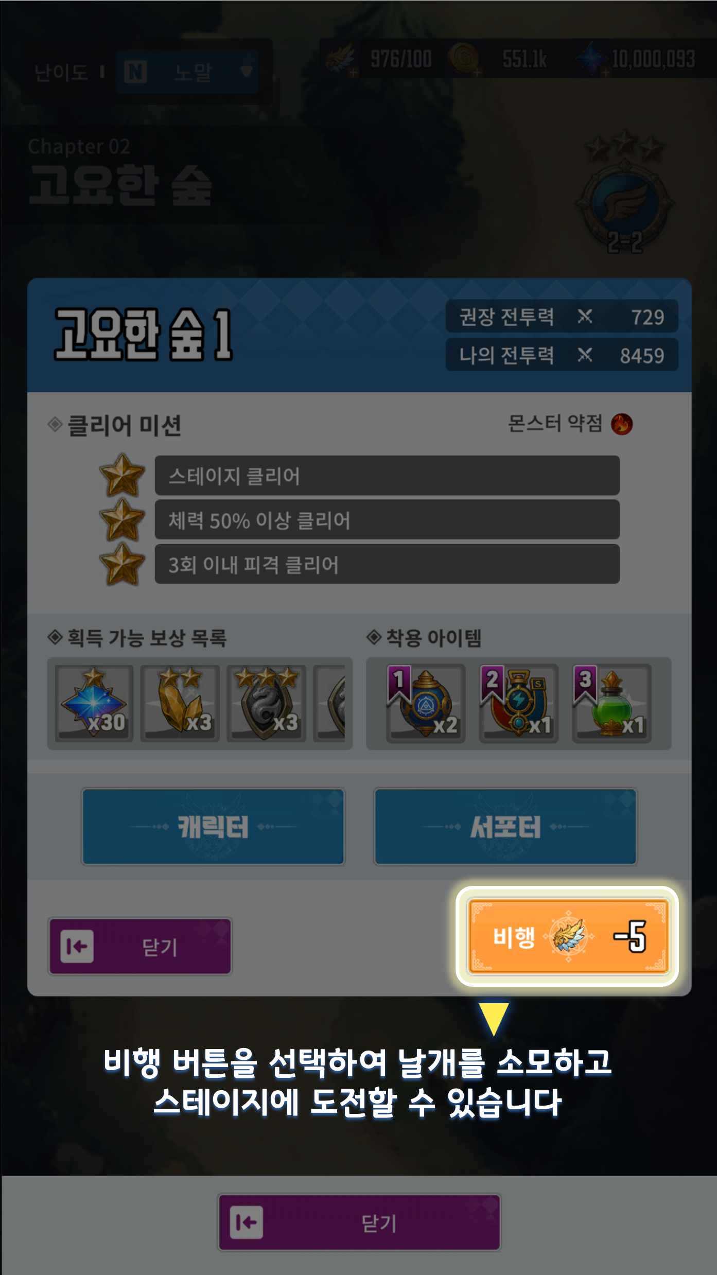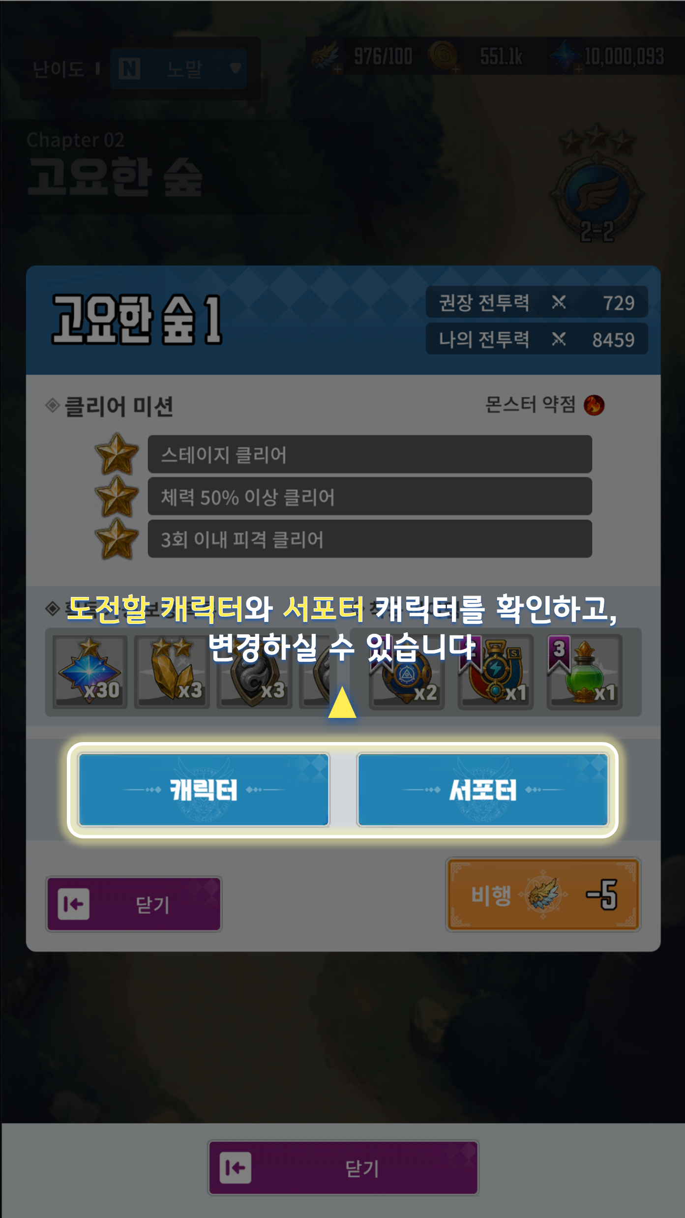 - 스테이지에서 클리어한 미션 수에 따라 클리어 보상이 지급됩니다.