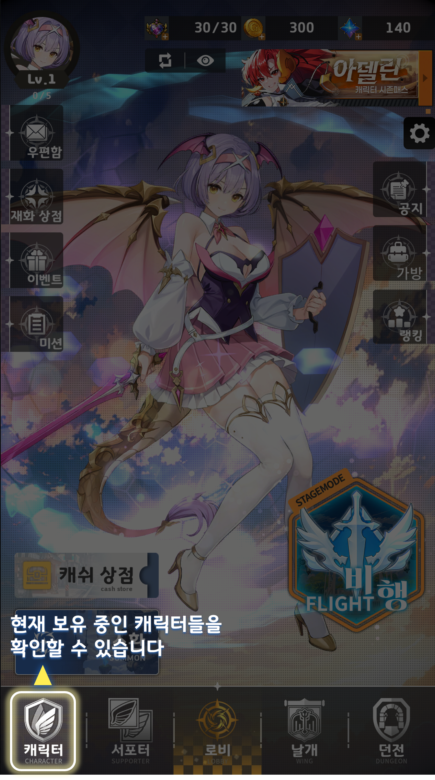 ⯌ 대표 캐릭터 화면