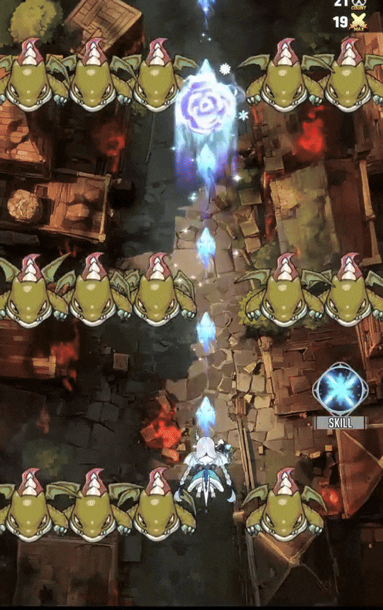 ![]() | > 각 캐릭터는 고유한 스킬을 보유하고 있습니다. > 스킬은 캐릭터 노말+ 등급 달성 시 잠금이 해제됩니다. > 스킬은 캐릭터의 레벨에 따라 위력이 강화됩니다. > 스킬은 일정 간격으로 자동으로 사용됩니다. ※ 예시 스킬: 레나의 ‘눈꽃’ |