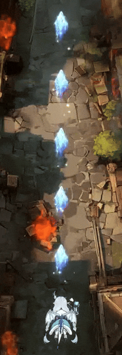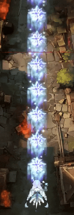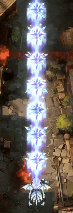 화면의 적 전체를 빙결시키는 눈보라를 발생시킵니다. 빙결이 된 적은 추가 대미지를 입습니다. |