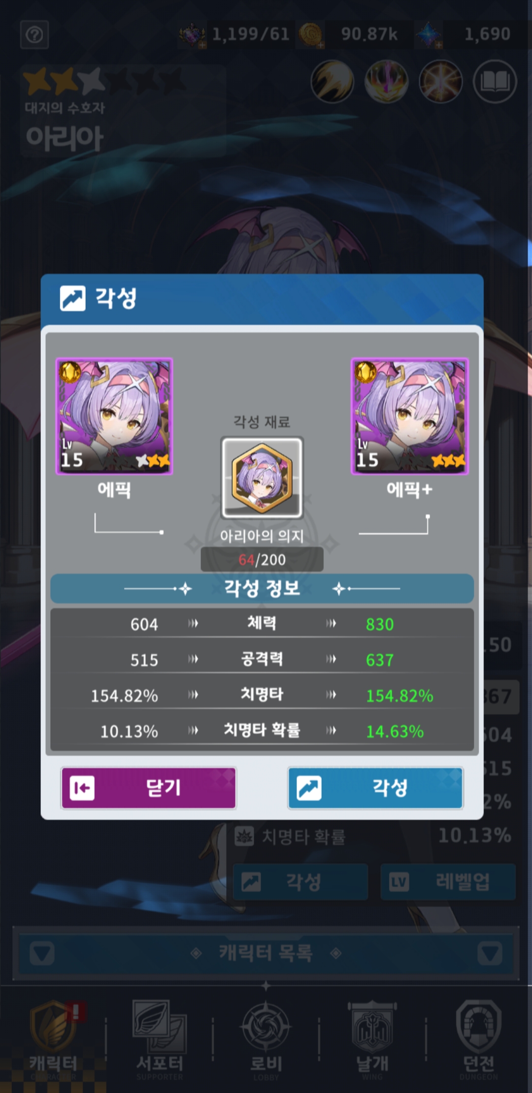 에픽+로 진화시 의지가아니라 정수가필요하는데 의지가 더필요합니다