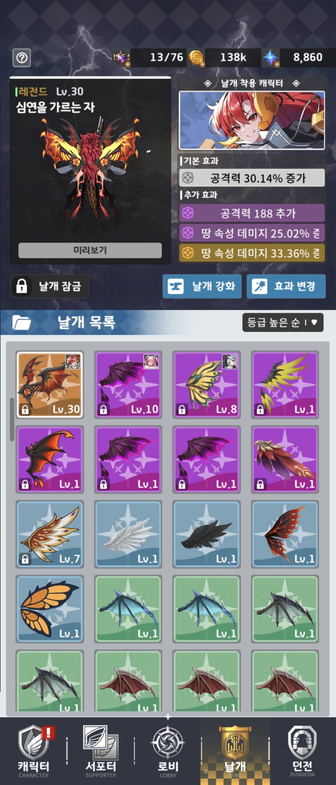 날개옵션 적용이 되고있는지 답변 부탁합니다