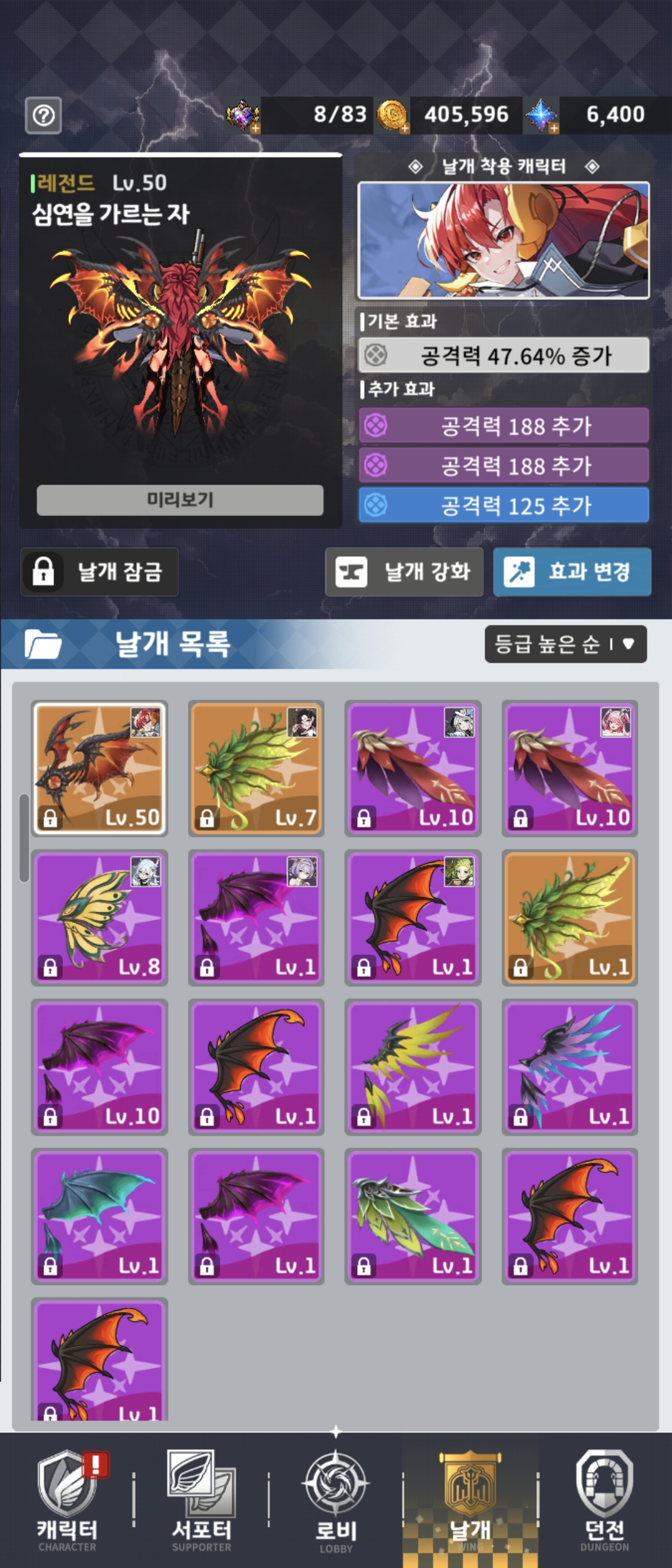 날개만렙시 가이드에 표기되어있는 수치와 실제 수치가 다릅니다