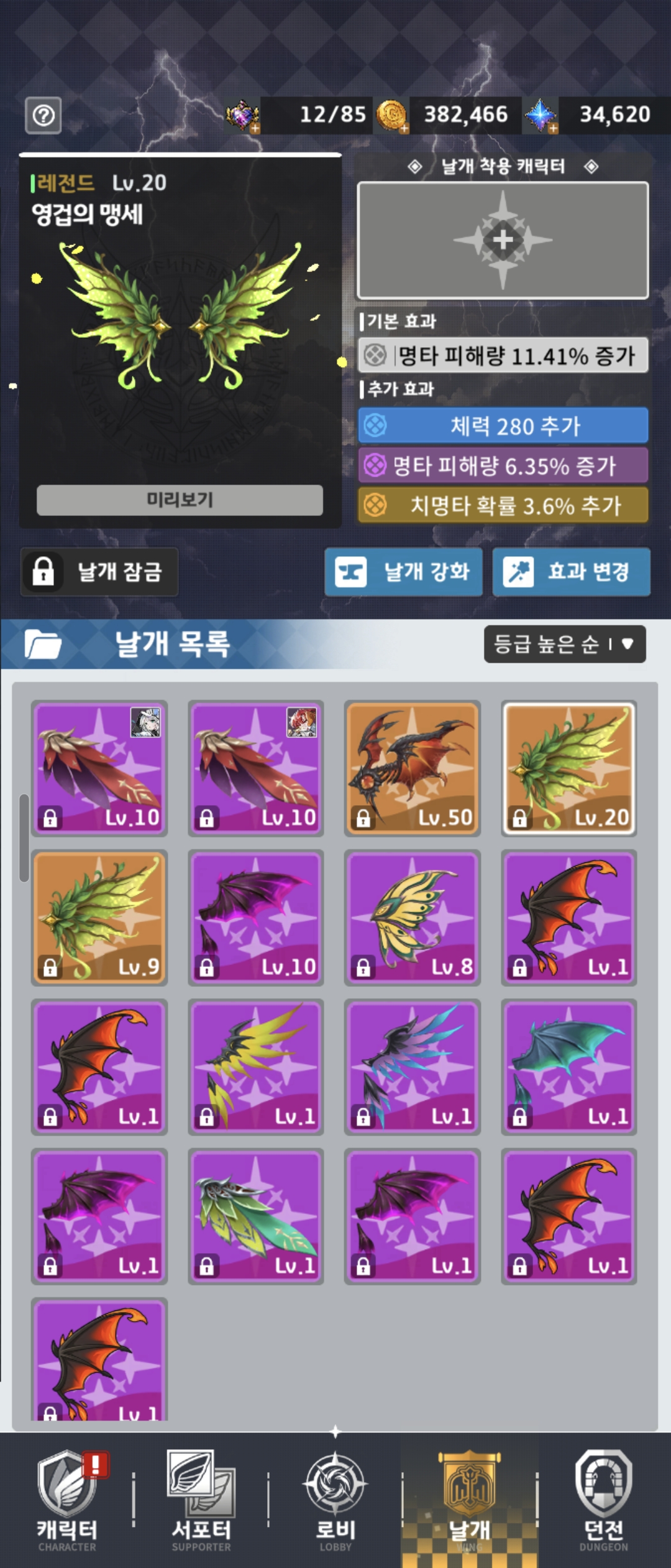 더 좋은 등급날개에 더 좋은 등급의옵션을써도 그냥 공격력이 최고인게 현실이에요