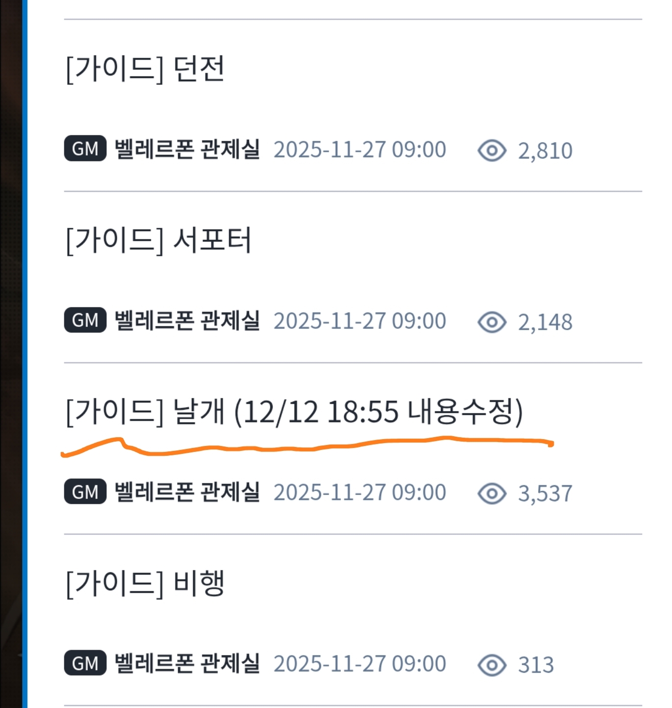 이번 12.12일에 업데이트 하면서 밸런스 조정 차원인지 날개의 수치 조정이 있었네요