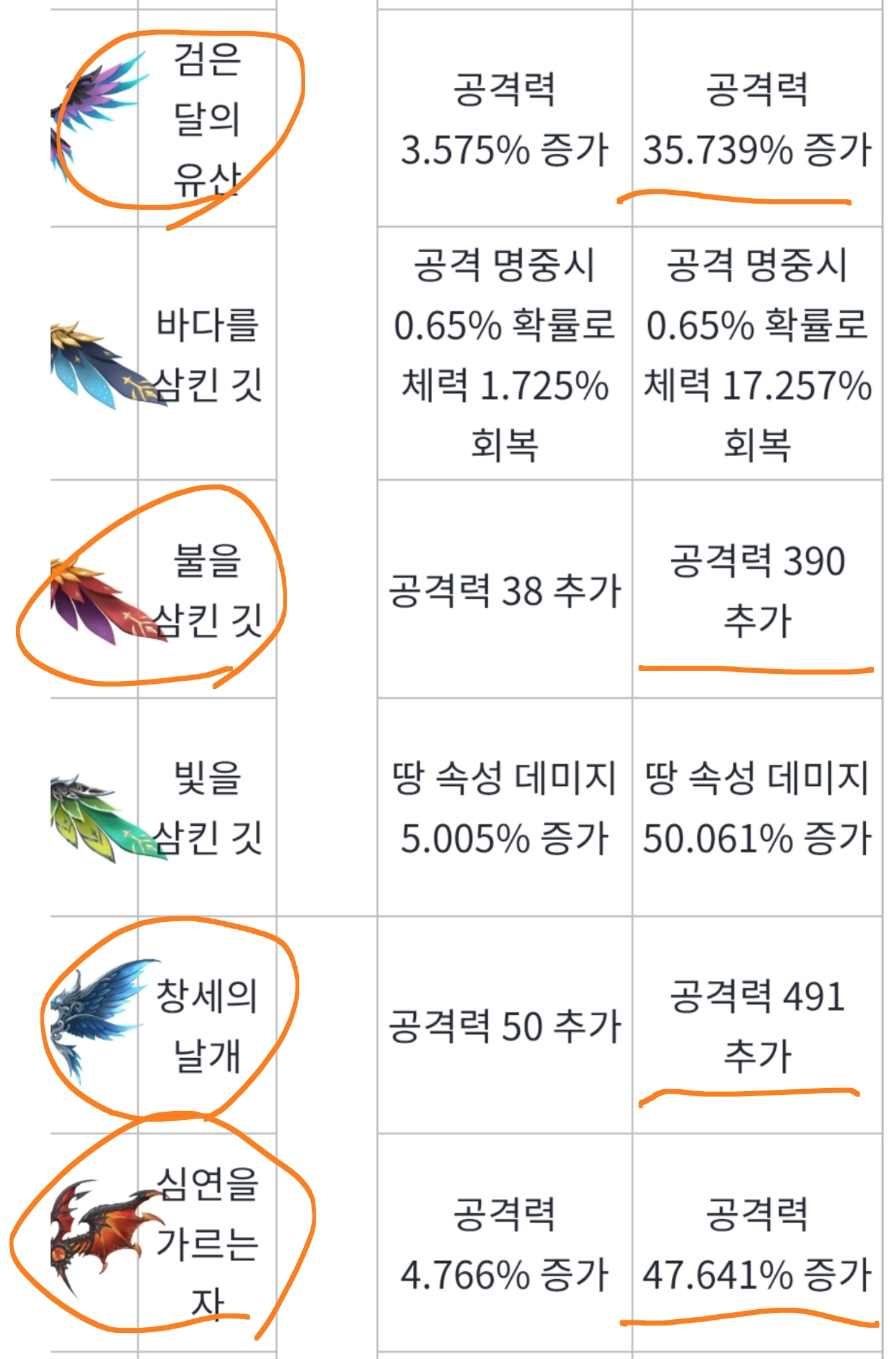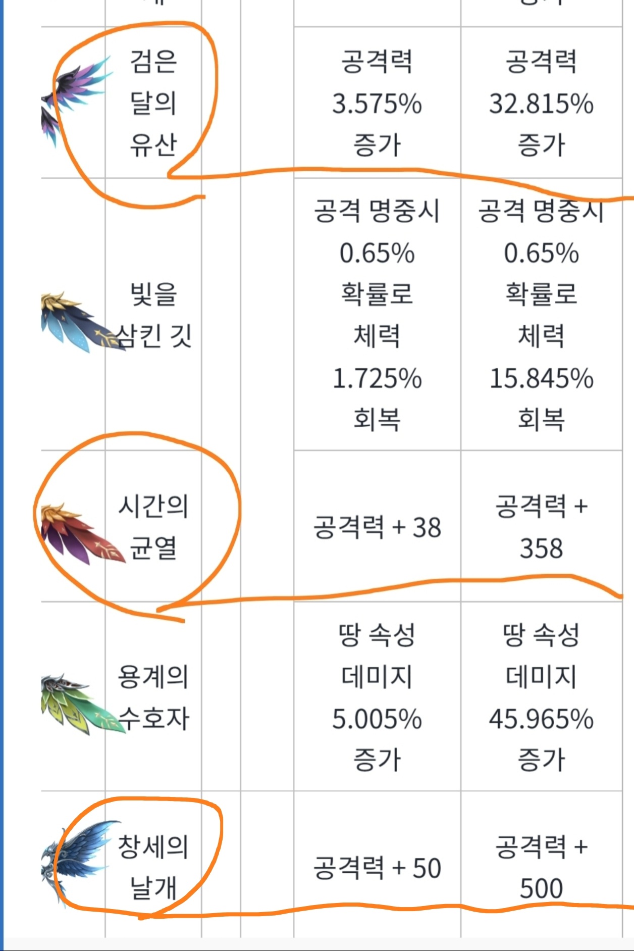 다른건 관심없고 현존최고 날개인 레전드 창세날개 심연의 날개, 유니크 검은달의 유산, 불을 삼킨깃만 확인해 봅니다