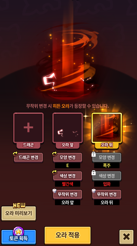 - 無作為変更(アーケードトークン9個)を通じて隠しオーラが登場することがあります。