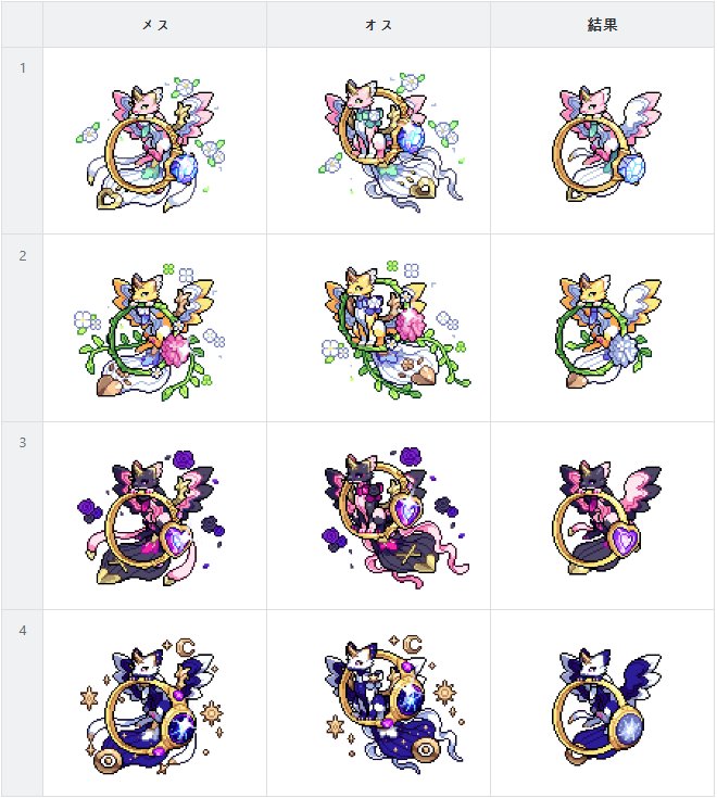 *専用交配公式は、両親がすべて同一外見の場合にのみ適用されます。