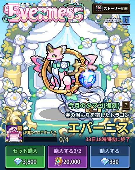 2026年3月を迎えるにあたり、予告どおり2025年3月の今月のタマゴ「エバーニス」も再購入できます。