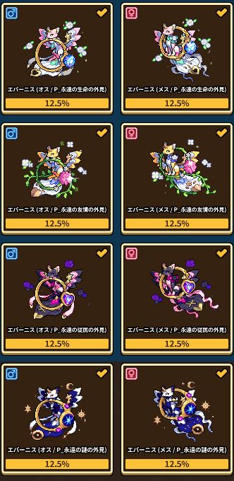 特殊外観は今月のタマゴからのみ入手でき、それぞれは次のとおりです。
