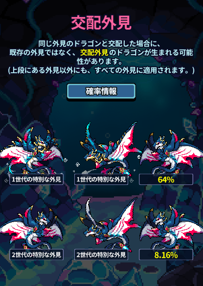交配で入手できる第2世代ドラゴンにはコモン外見とスペシャル外観があり、第2世代ドラゴンは外見に関係なく取引できます。