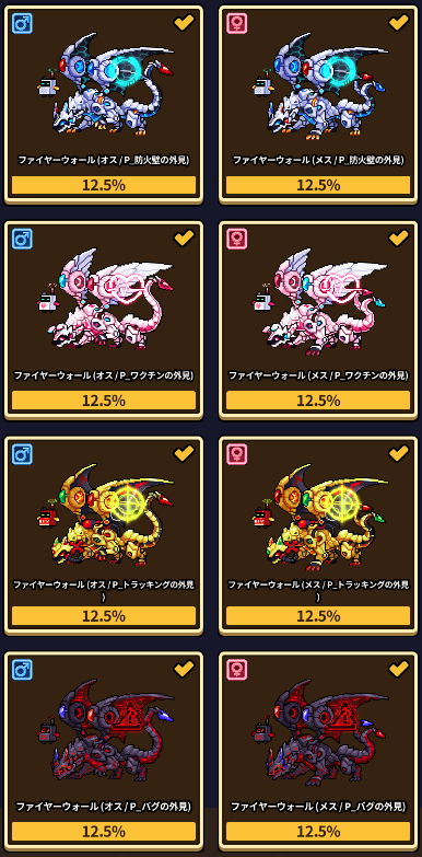 *専用交配公式は、両親がすべて同一外見の場合にのみ適用されます。