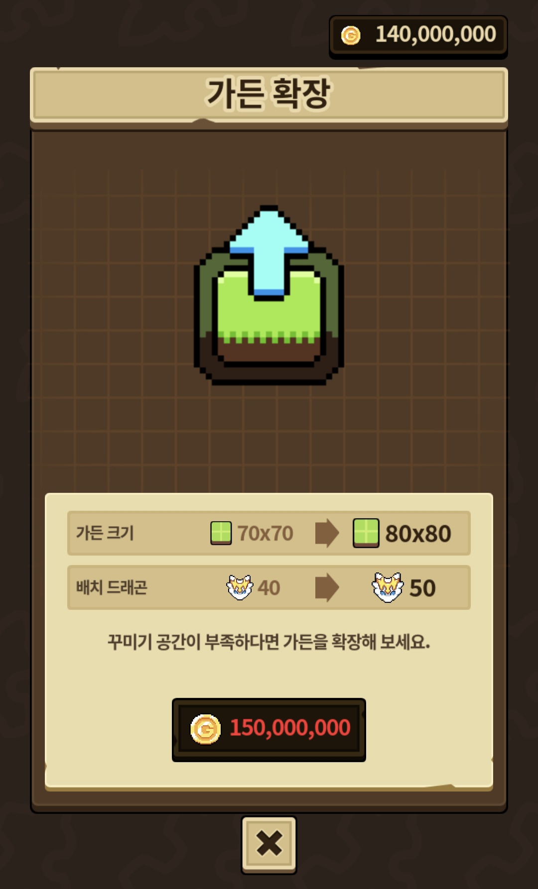 확장을 하기 위해선 150,000,000 골드가 필요한데