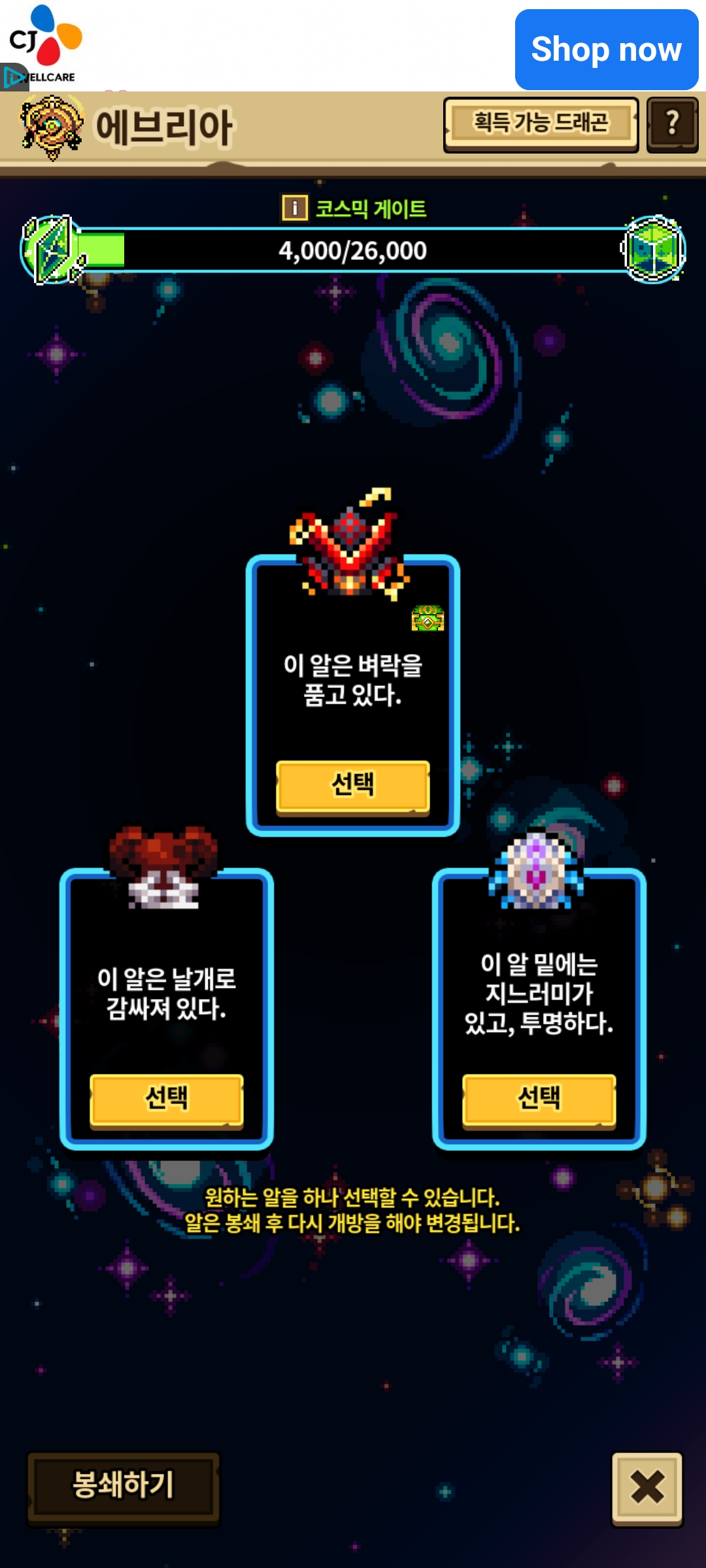 저 초록상자 누르면 에브리아 전용 드래곤이 확정인가요?? 아니면 저것도 랜덤인가요…?