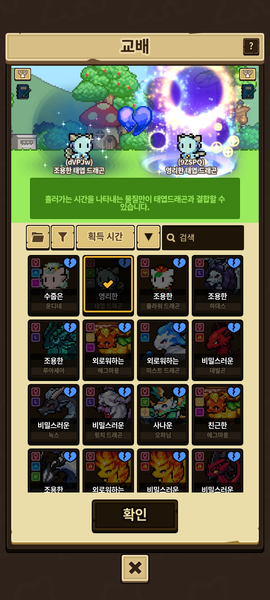 다른 시그니처 외형들은 교배가 되는데 태엽시그니처 외형만 교배가 안됩니다. 암컷 수컷인데요. 왜 그럴까요?