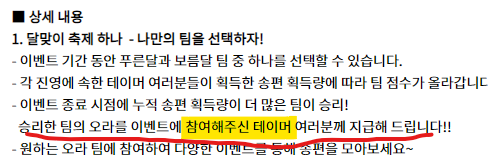 팀 선택시 하나(이벤 종료 후 지급), 승리시 하나 더 주는 식이었으면 솔직히 괜찮지 않았을까 싶어요…