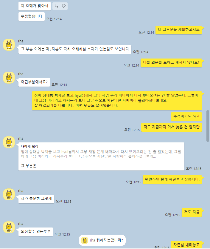 자유게시판 해명 및 사건 종결 Hyul 2023-09-27 07:32 236 0 공유 공유 URL 복사 페이스북 왓츠앱 카카오톡 라인 레딧 닫기 공유 3 3 댓글 0 삭제 이미지첨부 0/3000 등록