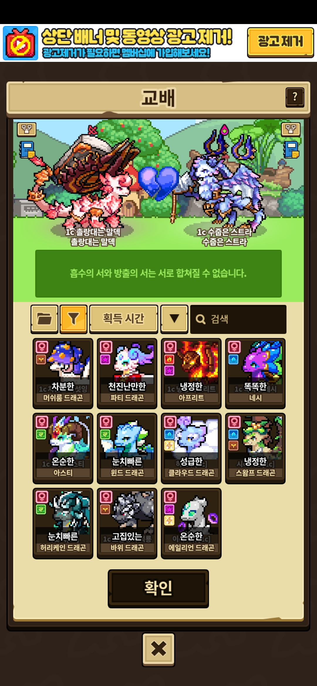게다가 가지고 있는 애들 중에서 교배 가능종도 별로 없고… 흑흑 맘에 드는 상대가 없어