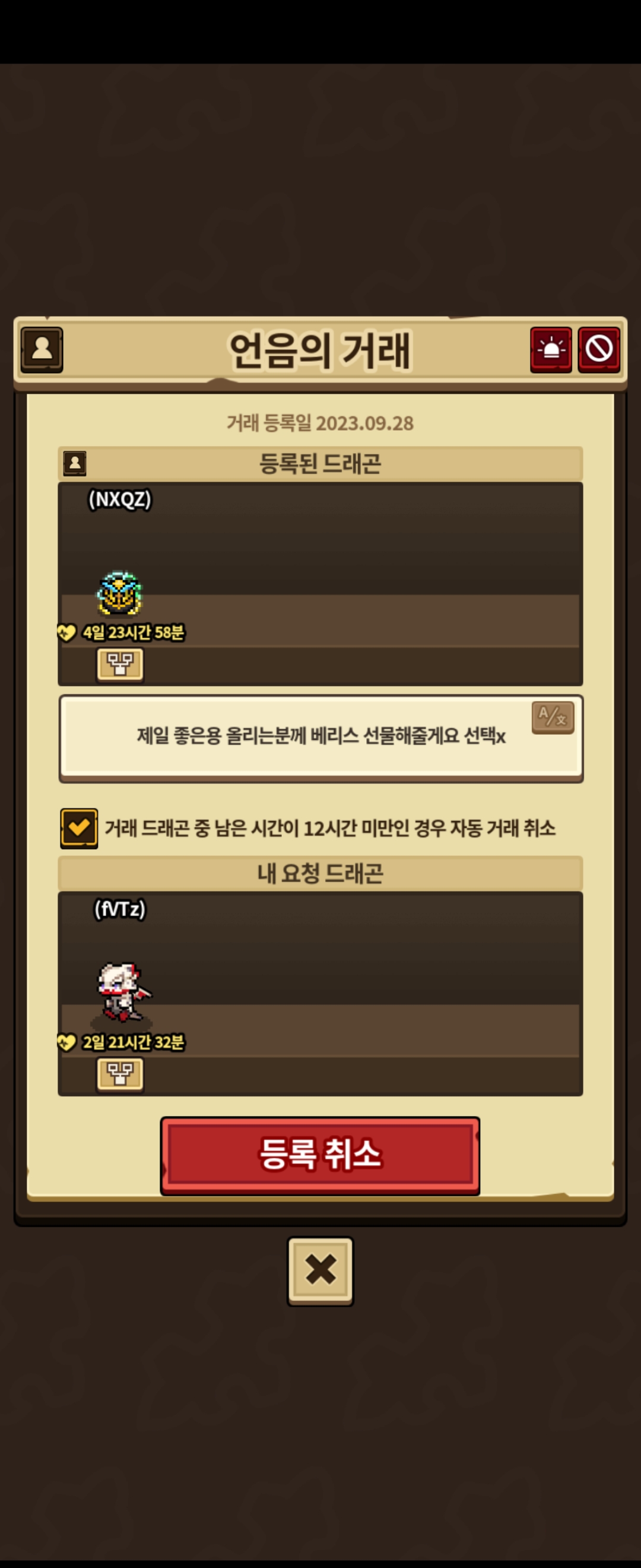 아래 거래 사진은 순간 느낌이 안좋아서 찍었는데 거래 취소하려고 하니까 이미 종료된 거래라고 나오길래 망했구나 했죠..