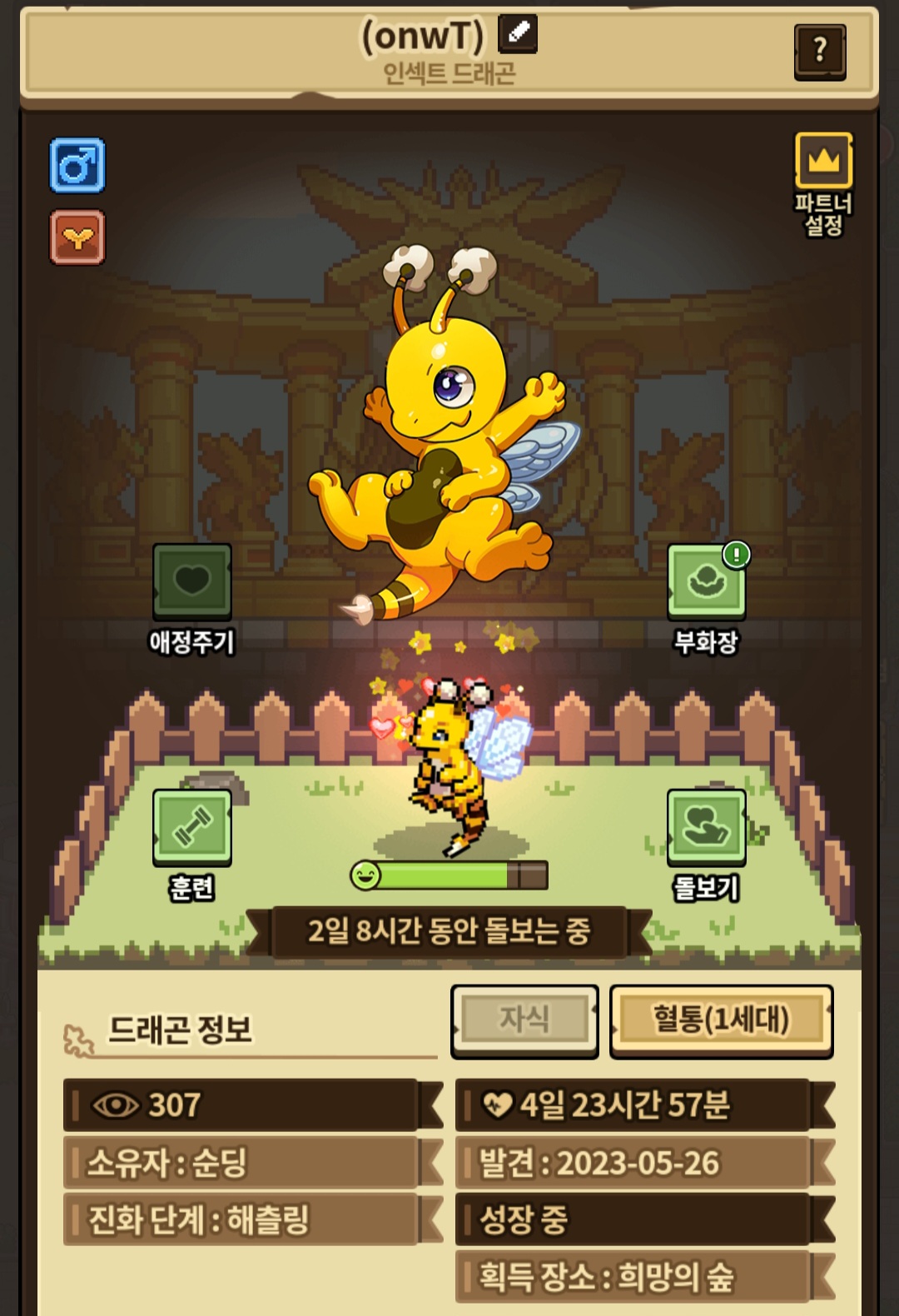 근데 타이밍이 좋게 애정주기가 뜬 해치상태에서