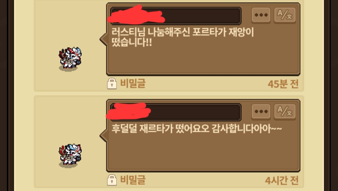 쌍광기는 쿨이 좀 남아있어서 아쉽게도 한쪽만 광기붙인 순혈 3세대, 순혈 4세대 재앙가능을 드리게 되었는데 이게 무슨 우연인지 두분 다 재앙이 뜨셨네요!! 두분 다 너무너무 축하드리고 동시에 앞으로 이런 이벤 더 자주 열어보도록 하겠다는 저의 다짐과 함께 이 글을 마치겠습니다~!