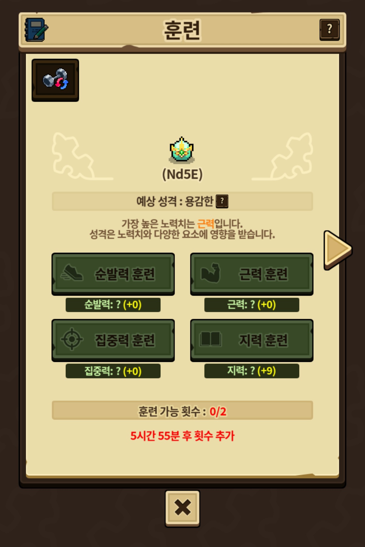 훈련가능 횟수 2일때 집중해주고, 순발력 해주고, 나중에 가능횟수 1되면 순발력한번 더간다..