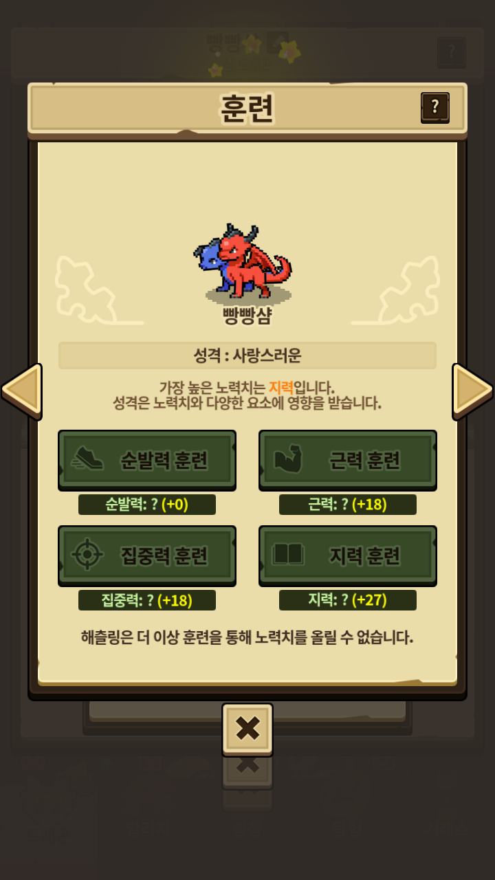 (훈련치는 완벽주의자도 같이 노렸지만 사랑스러운 조건도 달성해서 확률적으로 사랑스러운이 뜬듯)