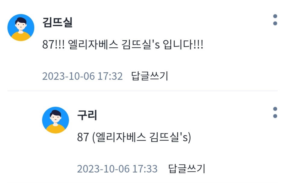 중복정답이면 정답이신분들 추첨돌려서 뽑겠습니다!