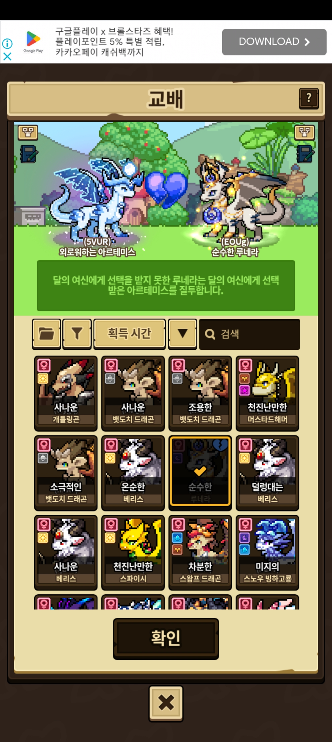 교배 막아놨네요 베리스 특능으로도 안되고…