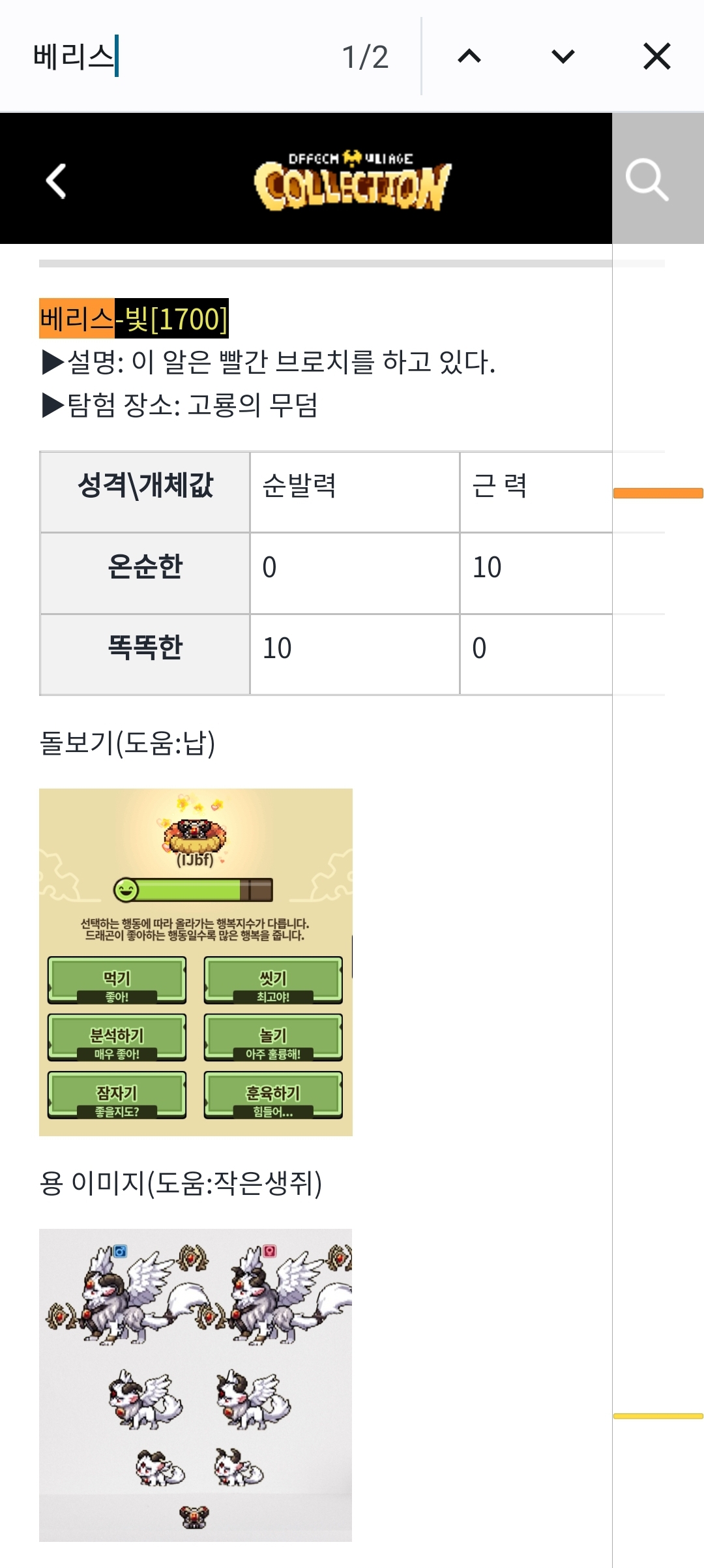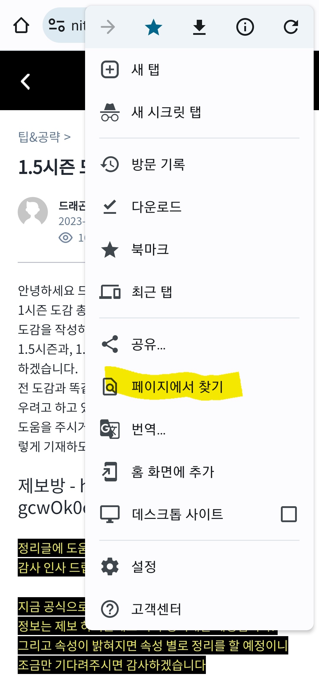 [페이지에서 찾기]클릭 후 용 이름 검색하면