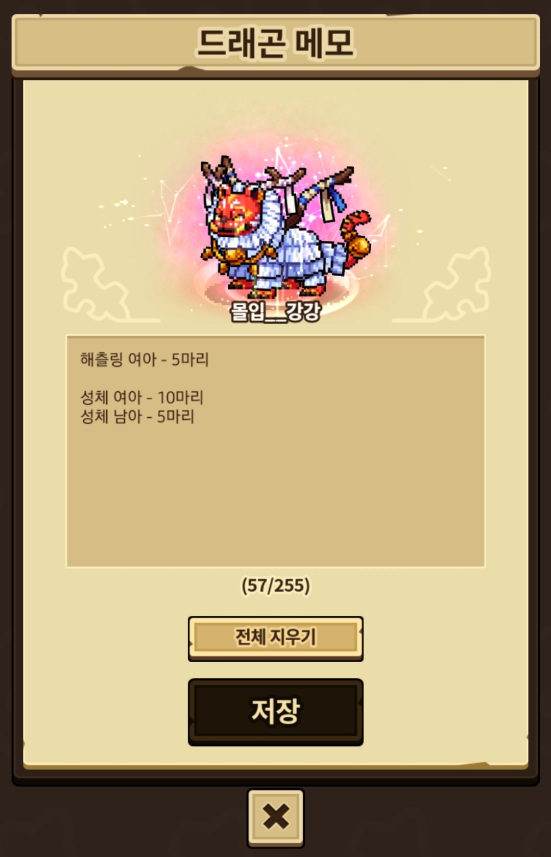 교배쿨이 남은 아이들은 교배쿨이 돌면 바로 교배해 선물로 넣어드릴 것이고 그 외에 아이들은 바로 교배해서 즉시 드릴 예정입니다