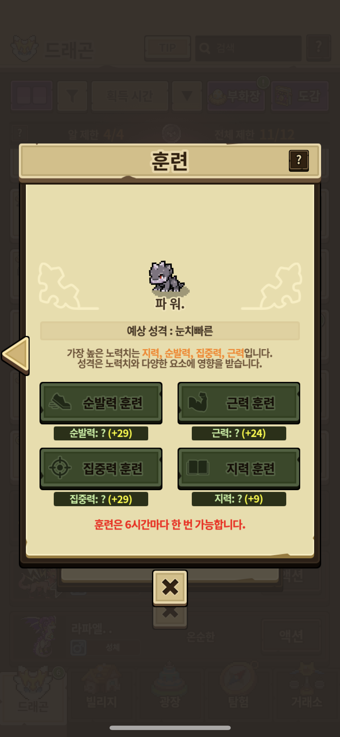 기본값이랑 훈련 합치면 110 넘는 거 같은데..ㅠ