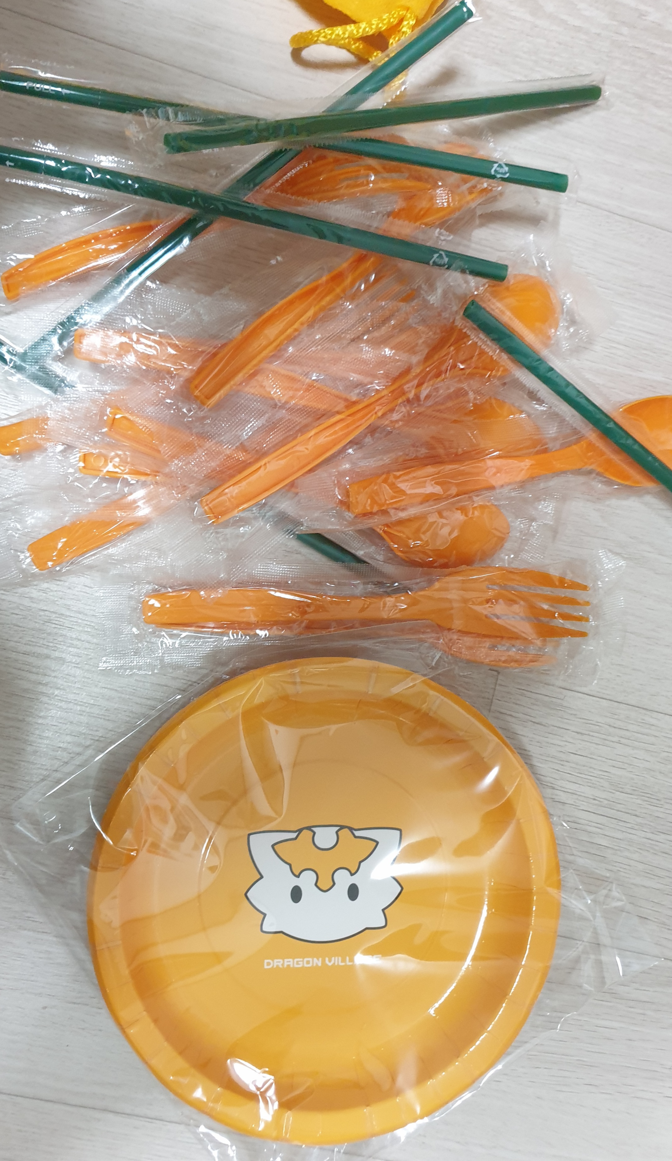 일회용 숟가락 포크 빨대 접시… 접시빼고는 어떠한 드빌이라는 표시도 없는…