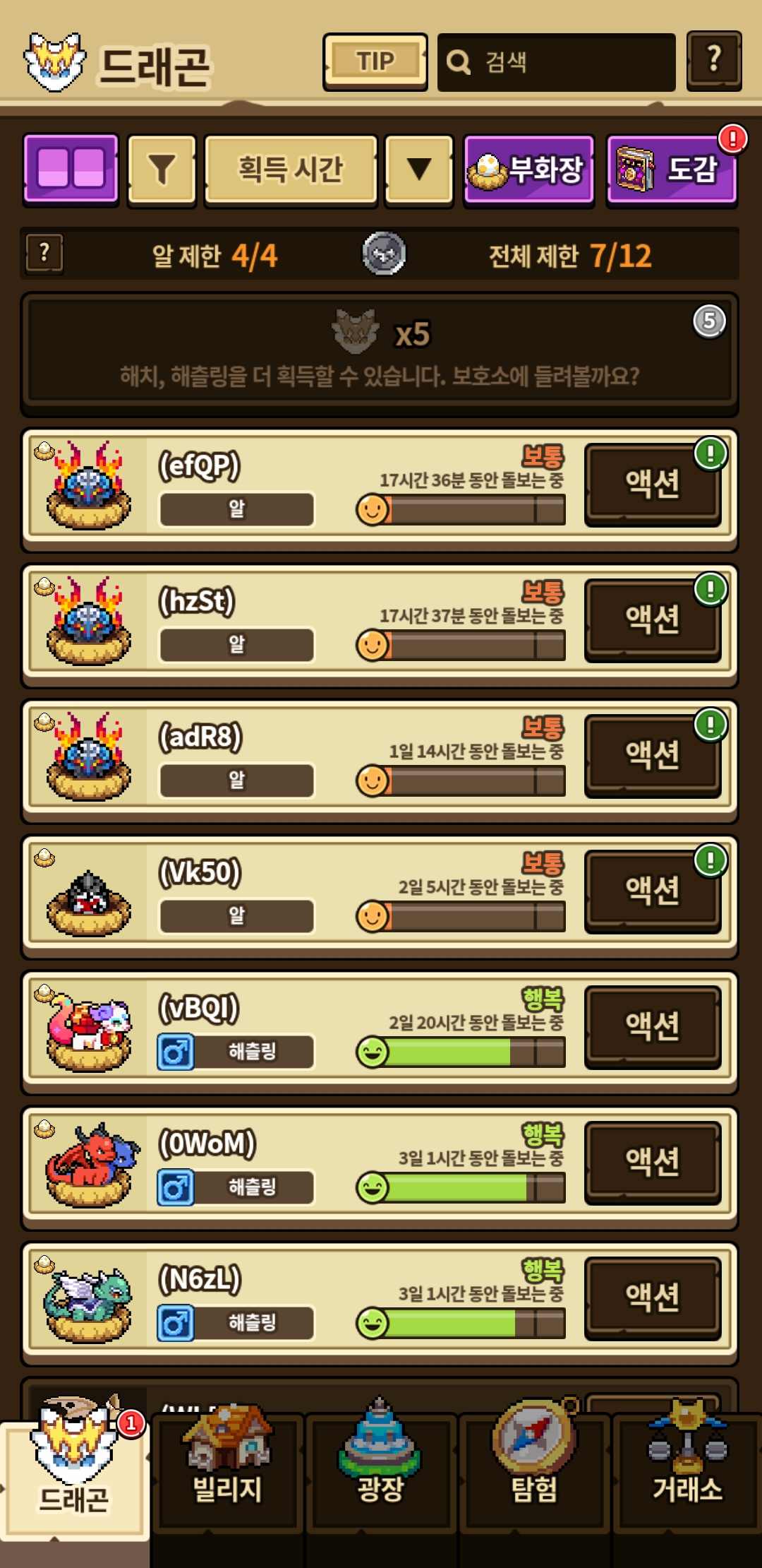 1마리는 지력 1마리는 집중력 올리는중이에요 희귀특성 뜨면 좋겠네여
