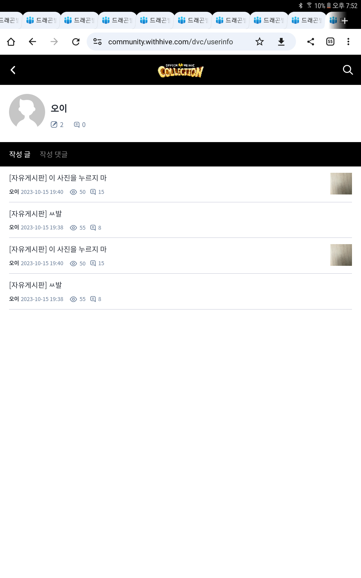 작성 글 작성 댓글을 서로 번갈아가며 빠르게 누르면 이렇게 글이 복사가 되네요.