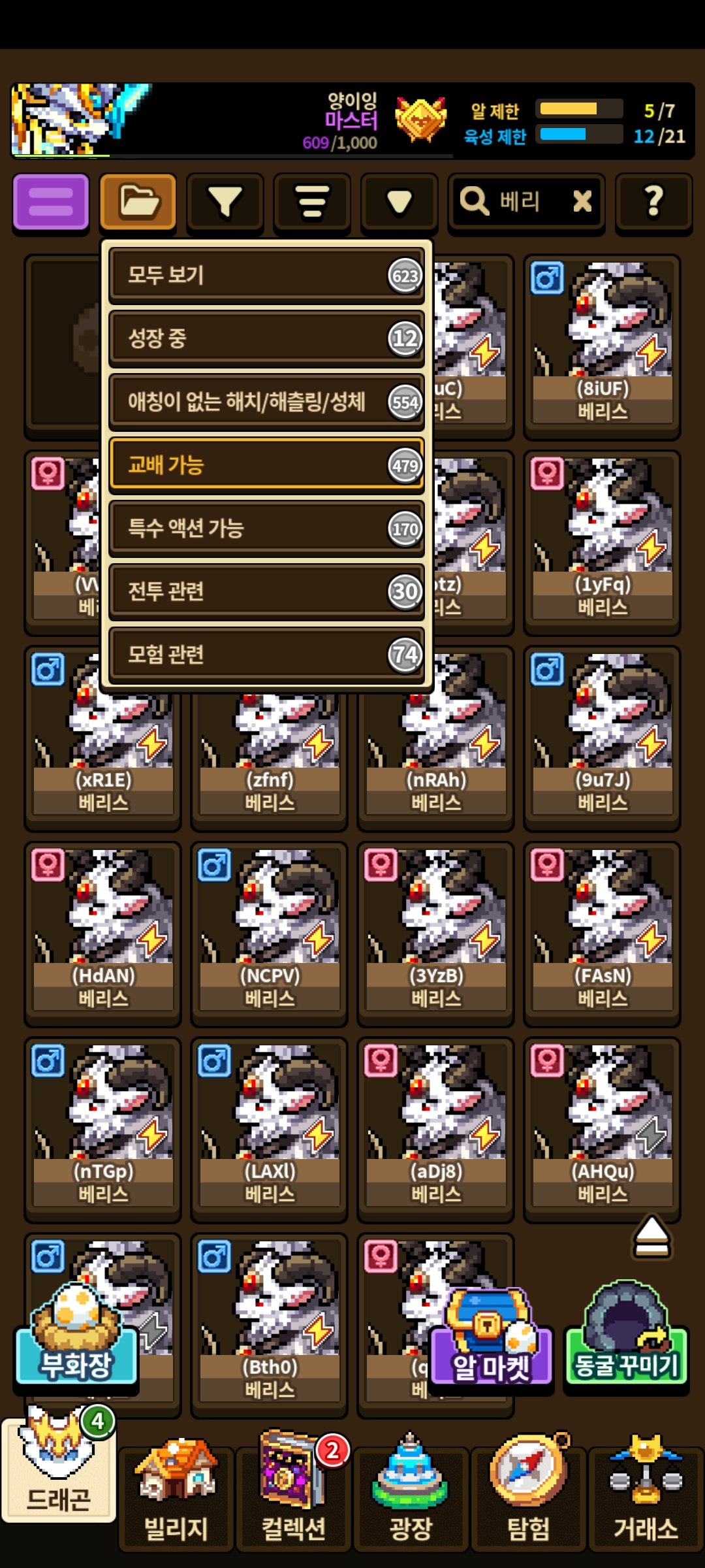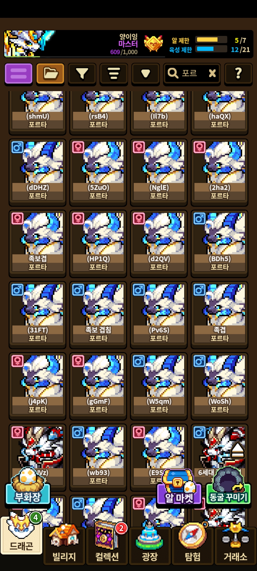 거의 대부분의 세대는 만들수 있고 하루 접속 안했더니 보이는 애들은 전부 교배 가능 상태라 1세대로만 제시받아요.