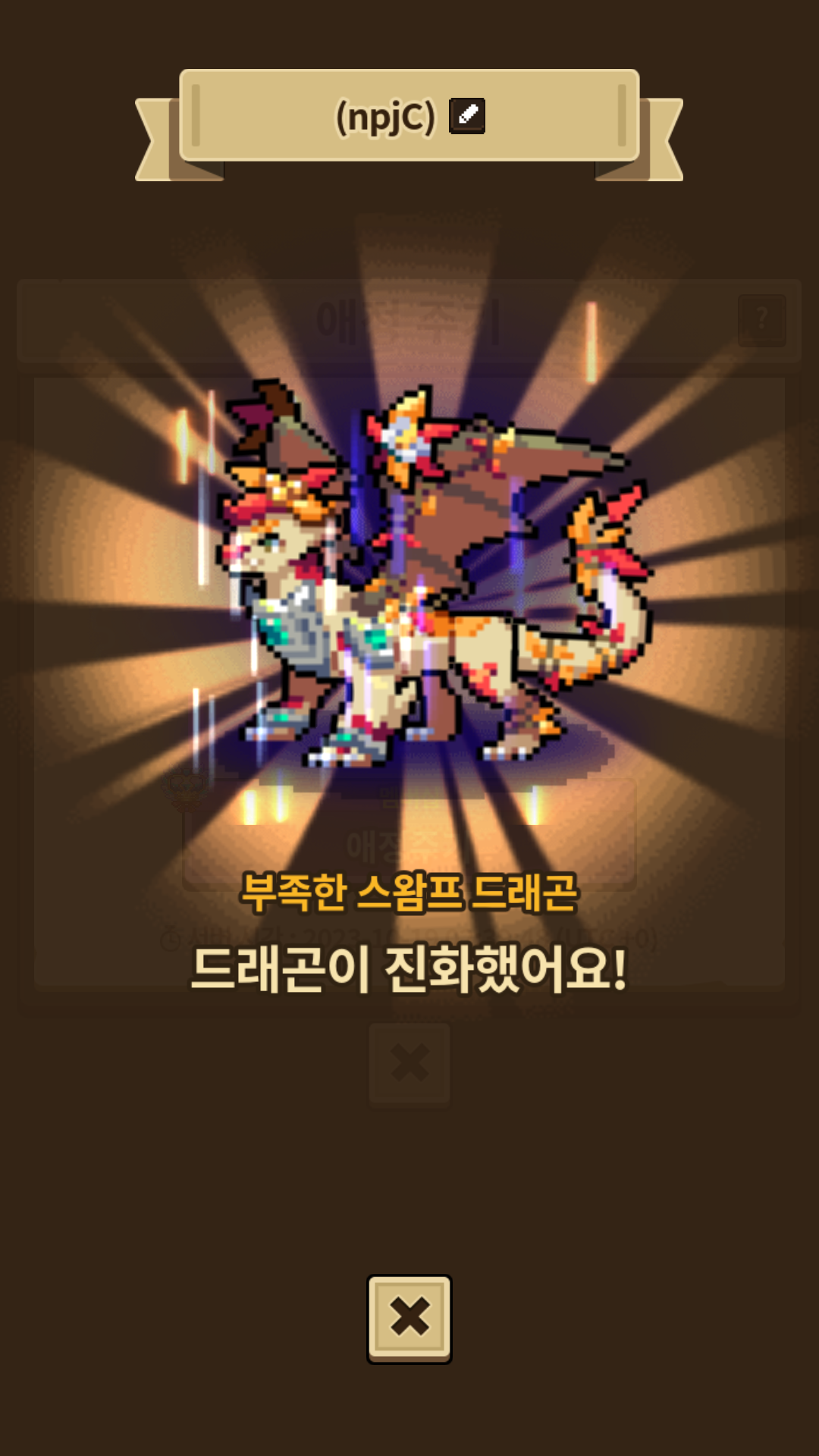 실수와 억까로 못 만들고 있던 부족한 성격의 스왐프 드래곤이 진화하였습니다.