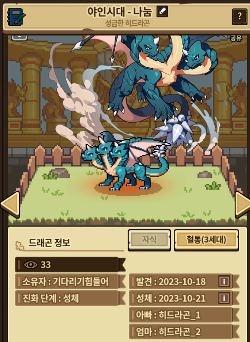 저번에 정말 운 좋게 추첨되어서 나눔받은 히드라곤 성체 완료했습니다.