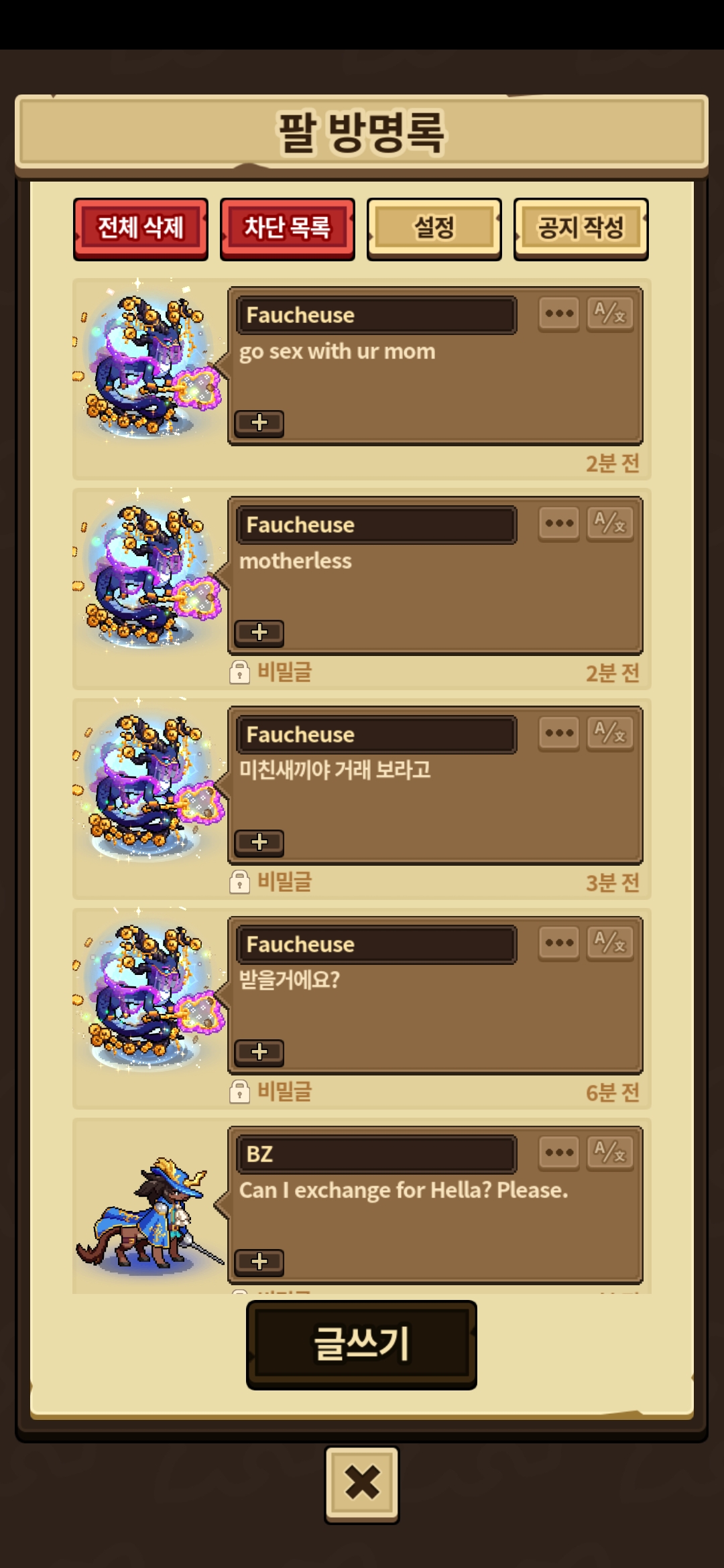 2세종말헬라 달라고 되도않는 잡 용들 제시해놓고 부모 교육을 못받은건지 혹은 그럴 부모가 없는건지 티를 내는 모자란 놈 하나 박제요 ㅋㅋ