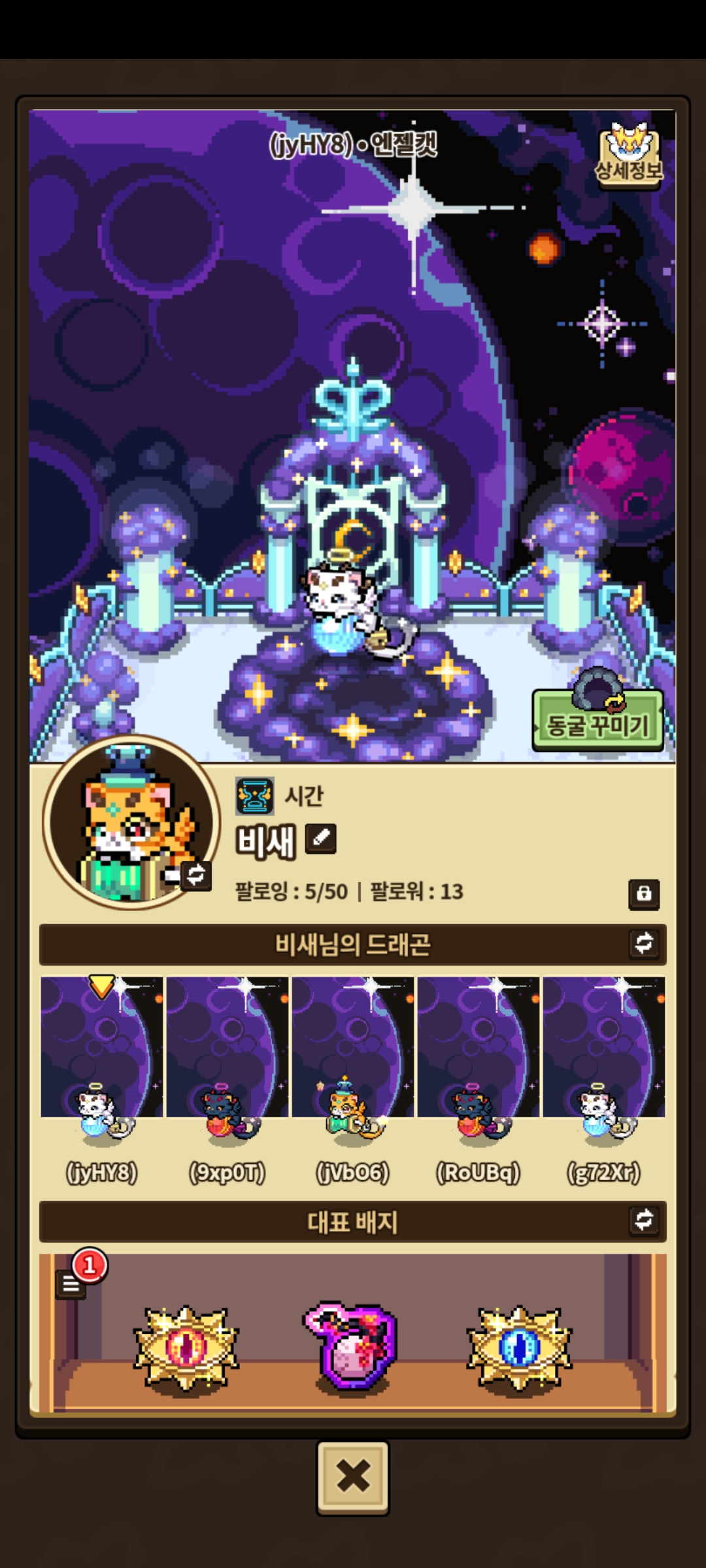 엔젤캣 도감작 하고가세요! 현재 해치이며 전종 빌리지에 풀어뒀습니다! (인형옷은 아직 부화 X)