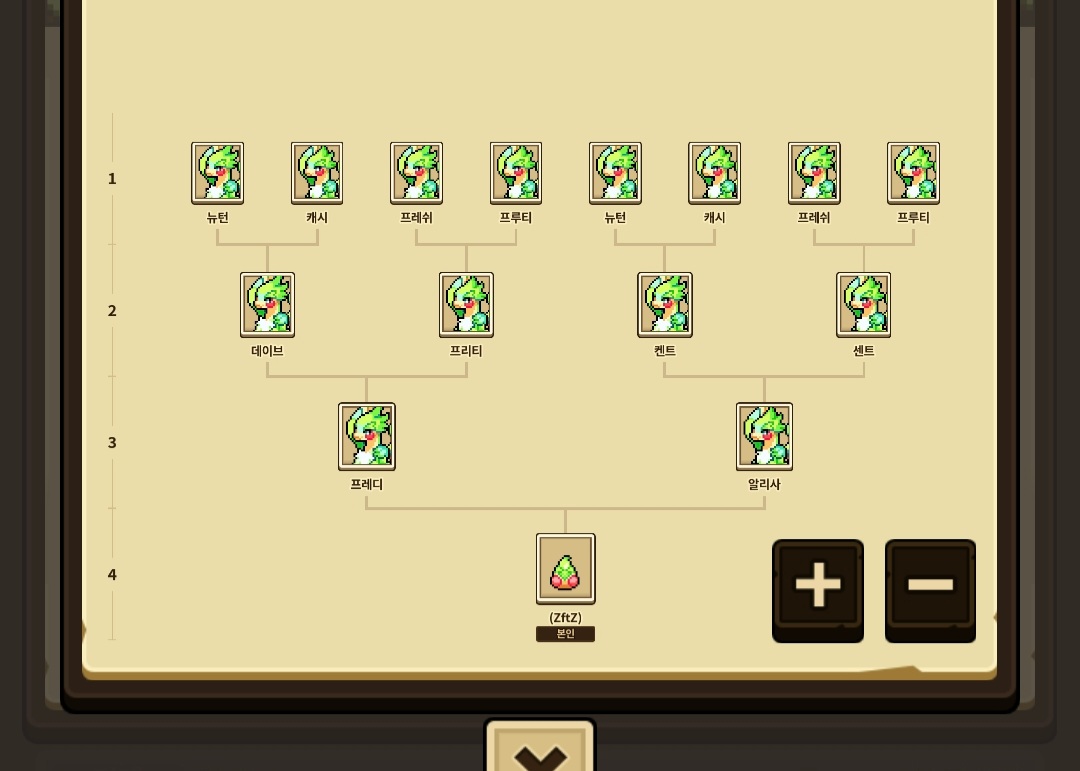 드케같은데선 일정수 세대 차이 나지 않으면 교배가 안됐던걸로 기억해서 당연히 여기서도 안될 줄 알고 애플칙을 4마리나 주워왔던건데… 두마리만 있었어도 되는거였네요.