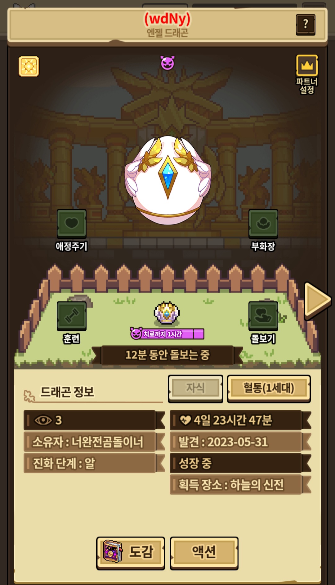 닉네임 “너완전곰돌이너” 입니다!! 빌리지에 있는 엔젤드래곤 한 번씩 만져주시면 감사하겠습니다 (ღ•͈ᴗ•͈ღ)♥