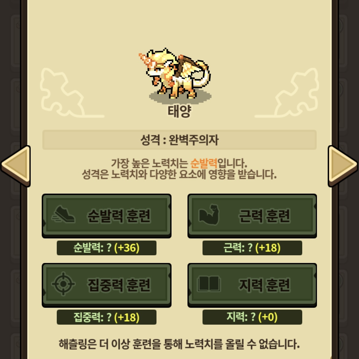 처음에 지력이 제일 높았고 0 15 15 25 상태로 온순한이었습니다
