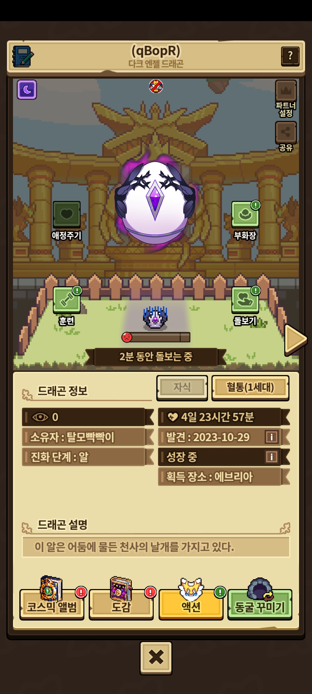 이거 미지의 성격은 훈련 안하고 돌보기만 하면 되는거죠?