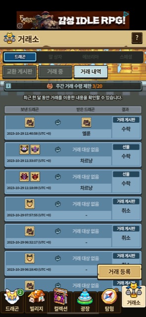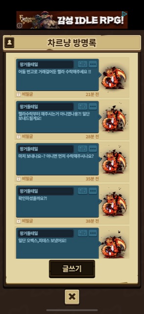알 상자 거래소에서 헬라를 올리고 제시하시길래 안될거알지만 제가 가지고있는 어둠번고+순2논대+순2 베리스 드리겠다고 했고 이분이 오케이 하셨습니다 위에 방명록 보이듯이 그래서 그분이 처음에 알하나 먼저 보내주시면 허락하겠다했는데 알칸이 두칸 비어있어 둘을 먼저 보내드렸으나 그분이 허락은 커녕 나머지를 우선 보내라고 하시더군요 그래서 믿고 보내드렸으나 잠수후 결국 거래소에 알을 빼버리시더군요 보자하니 뉴비이신것같은데 순2라 별로 상관은 없는데 잠수와 무응답이 너무 괴씸해서 글 올립니다.