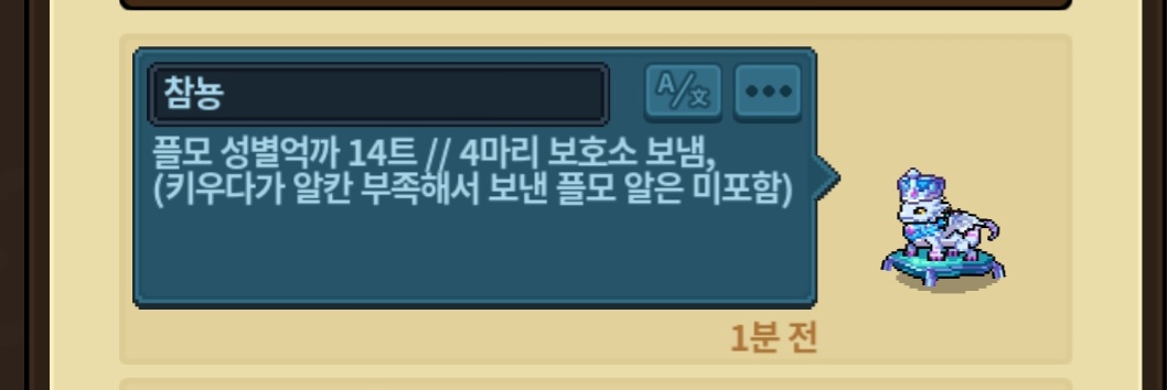 알칸 부족해서 보낸 플모 알들은 성별을 모르기 때문에 포함 안시켰답니다 :)