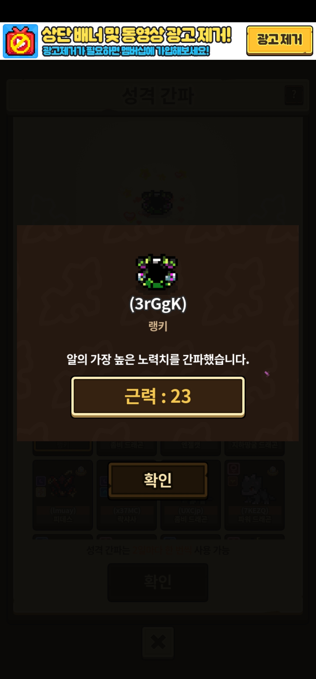 근력을 23 올리니 가장 높은 능력치가 근력이 됨