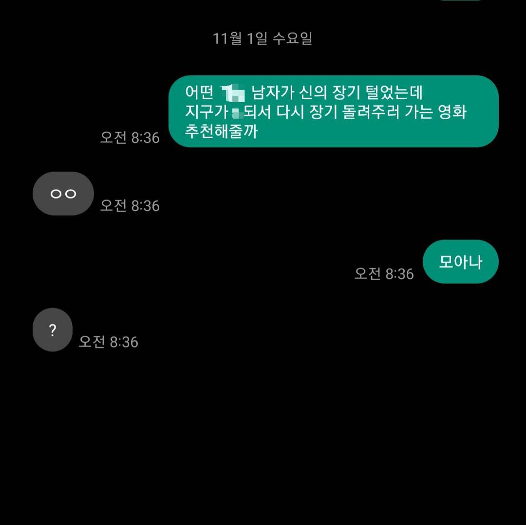 참고로 친구와 저의 실제 문자내용입니다...ㅋㅎㅋㅎ