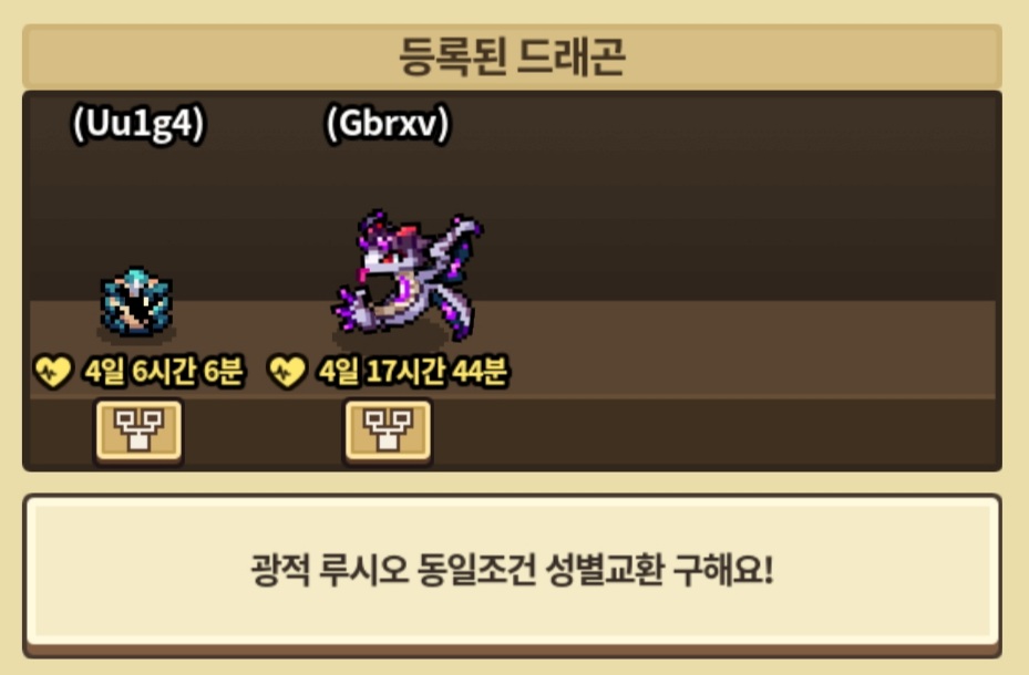 광적 또는 특수성격 1세대 루시오 여아로 교환 원해요!