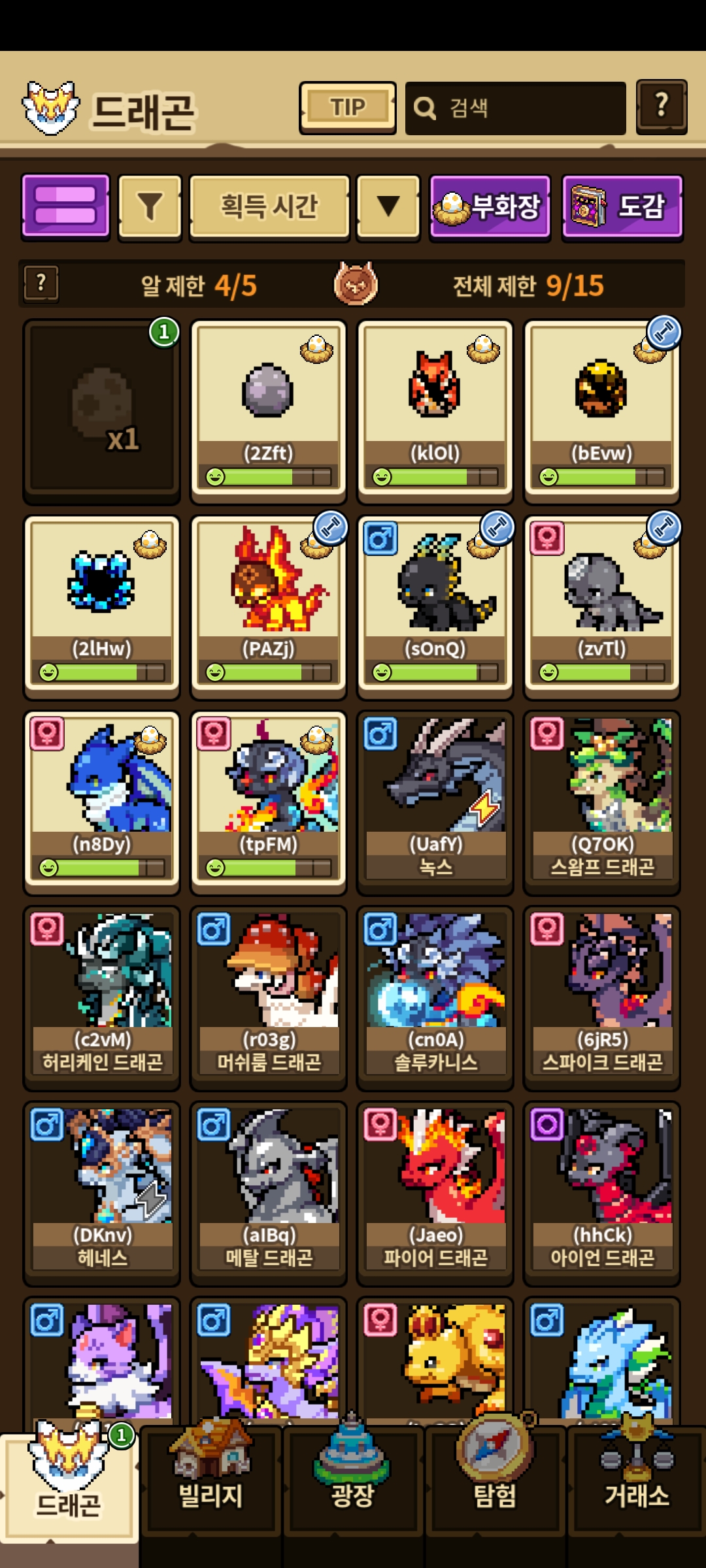 방금 희망의 숲에서 은 파워드래곤을 포함 저도 이제 4대신룡이 다있네요..ㅠㅠ그동안 4대신룡 얻는다고 도감작도 소홀히 했었는데..이제 조금씩 할 수 있을것같네요..ㅠㅠㅠ용들 다 크면 다크닉스 잡으러 갑니다.!!(고대신룡은 맨밑에 있어서..안보임...)